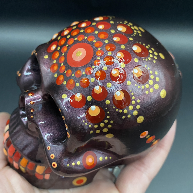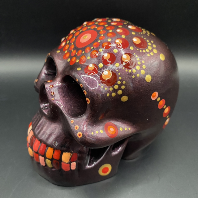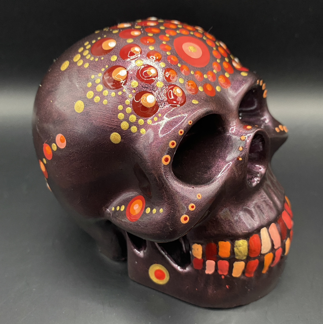 Gerne fertige ich auch Schädel auf Kundenwunsch. Die Farbe der Grundierung und der Punkte kann frei gewählt werden.