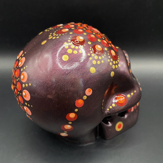 Dot Painting Totenkopf burgundrot/rot/orange