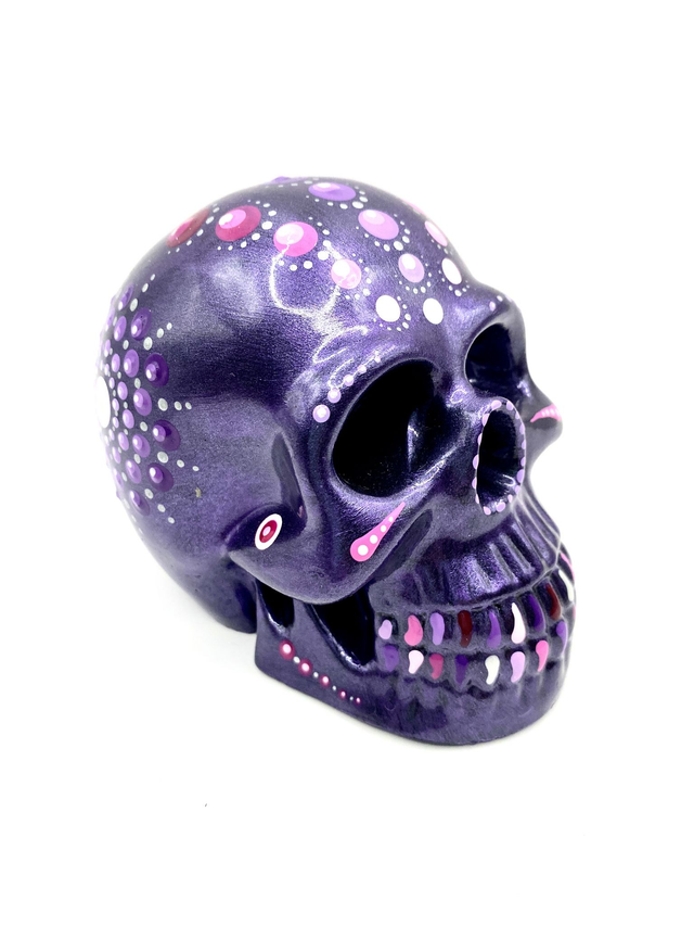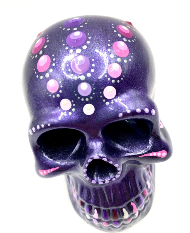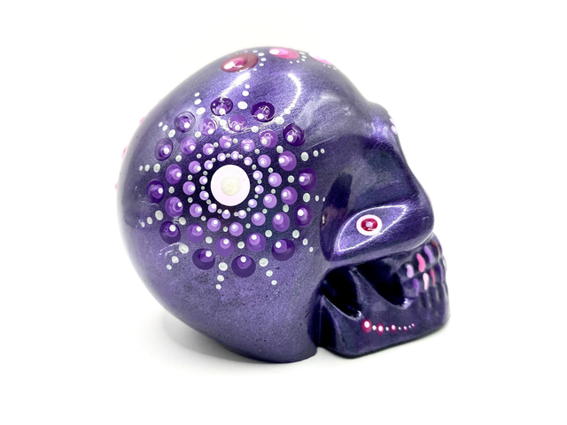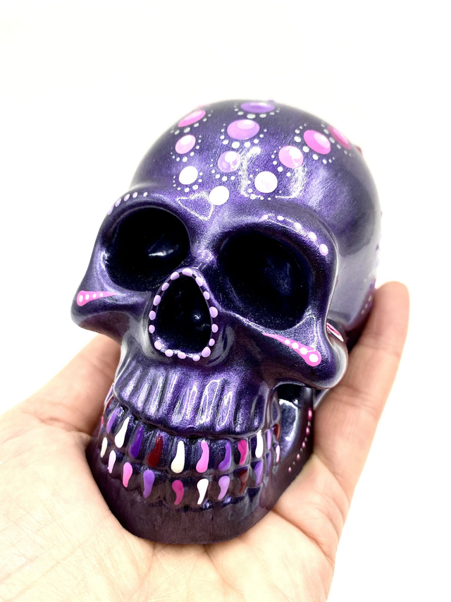 Gerne fertige ich auch Schädel auf Kundenwunsch. Die Farbe der Grundierung und der Punkte kann frei gewählt werden.