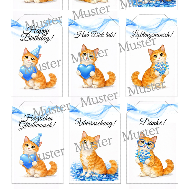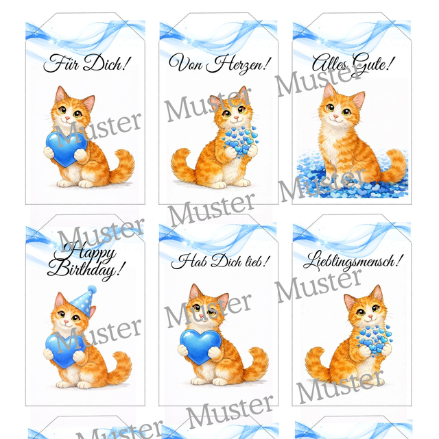 Katze orange - 9-teiliges Geschenkanhänger-Set verschiedene Motive