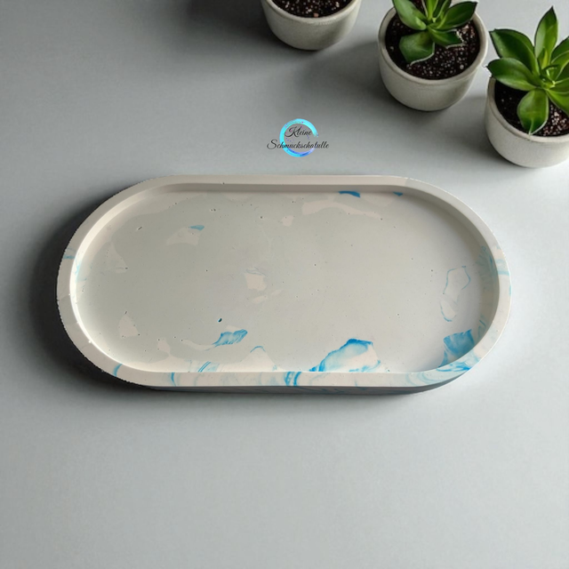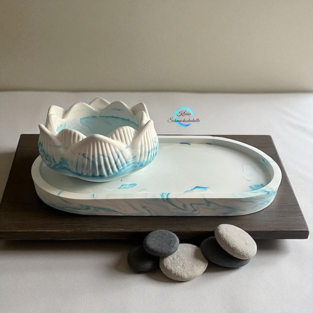 Tablett in hellgrau / weiß marmoriert gegossen aus Keracraft Gießpulver