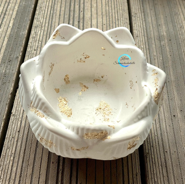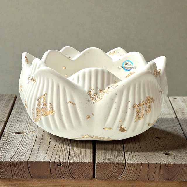 Teelichthalter LOTUS, gegossen aus weißem Xyrarock Gießpulver