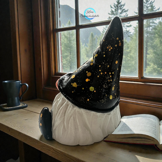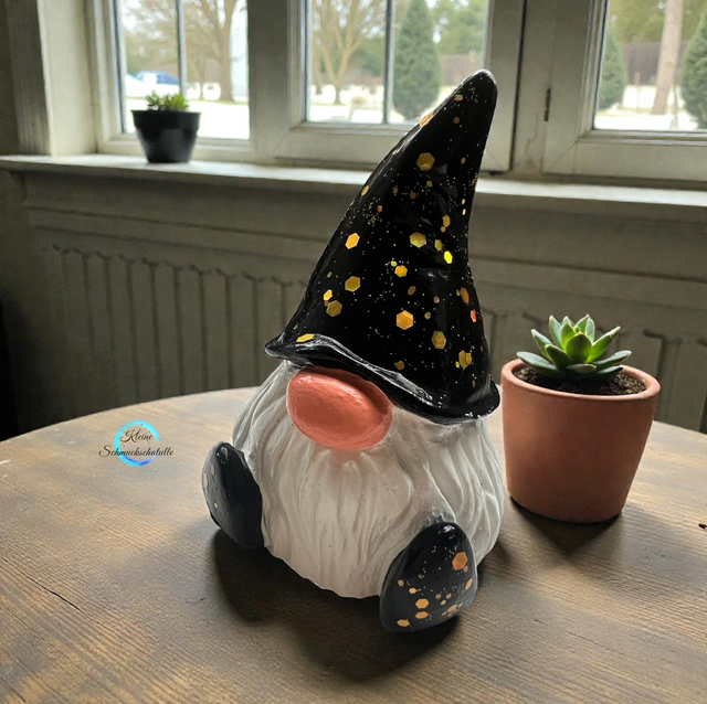 Wichtel schwarz/weiß/Gold Glitzer, Dekofigur